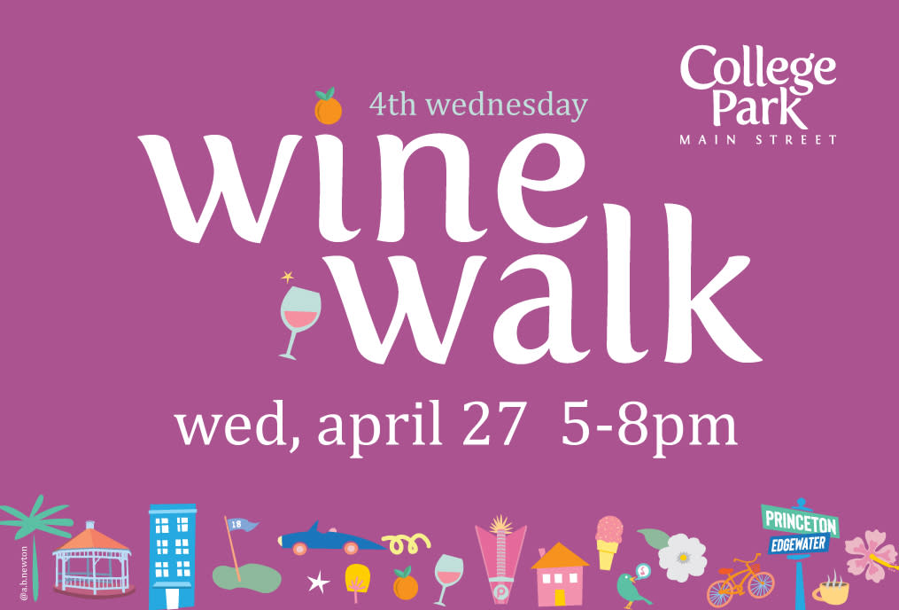 College Park Main Street and participating businesses invite you to come Sip + Tour #32804. There are approximately 20 businesses on our wine stops. Register now for $10. To pick up your wristband and cup check in at Infusion Tea or Good Crowd. This is a rain or shine event and there are no refunds. Register